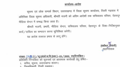 टिहरी की अतिरिक्त जिला सूचना अधिकारी भजनी देहरादून मीडिया सेंटर से संबद्ध, आदेश जारी