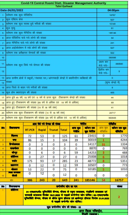 टिहरी में आज कोरोना के 54 नए मामले , देखें किस ब्लॉक में आए कितने मामले