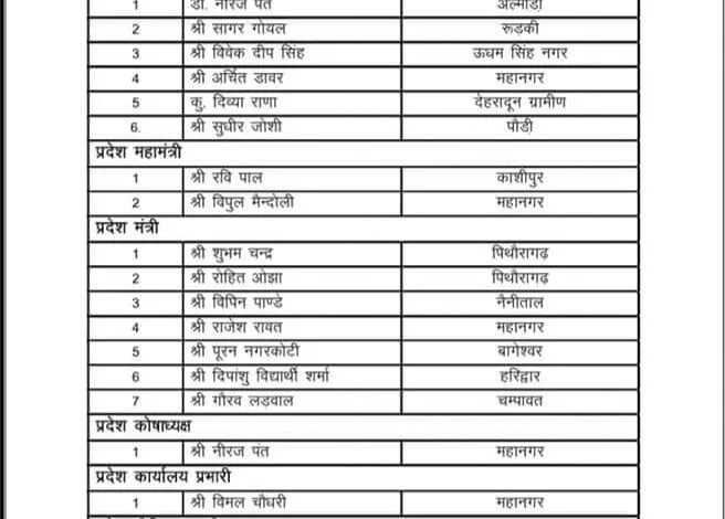बड़ी खबर : बीजेपी ने इन पदाधिकारियों की करी घोषणा, जानिए आपके जिले से किसे मिली जिम्मेदारी