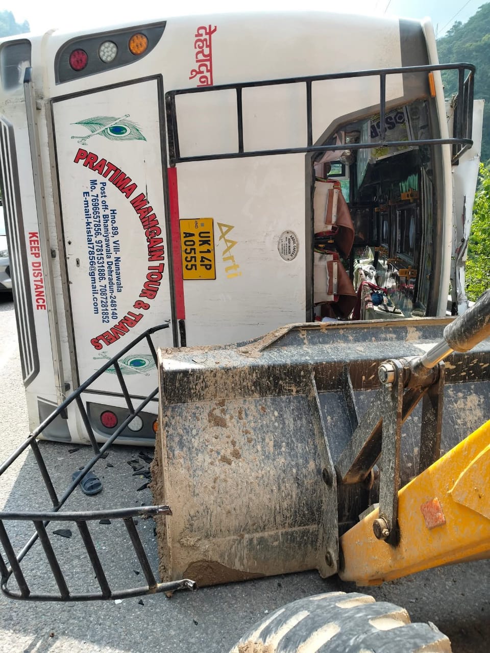 टिहरी से बड़ी खबर : नगणी के समीप सड़क पर पलटी बस