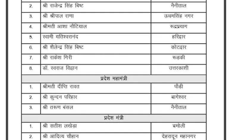 बड़ी खबर : भाजपा ने जारी की प्रदेश कार्यकारिणी, टीम में अनुभव और ऊर्जा का संगम