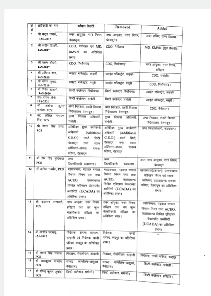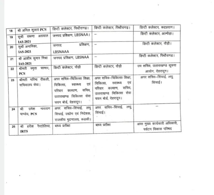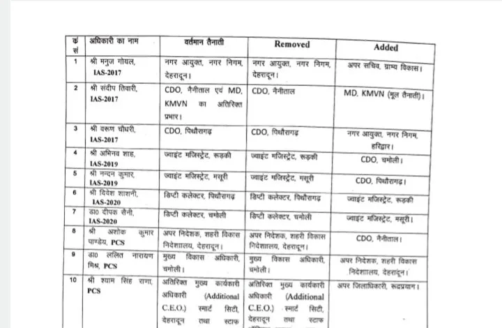 उत्तराखंड से बड़ी खबर सामने आ रही है, उत्तराखंड सरकार ने IAS एवं PCS अधिकारियों के बंपर तबादले किए हैं