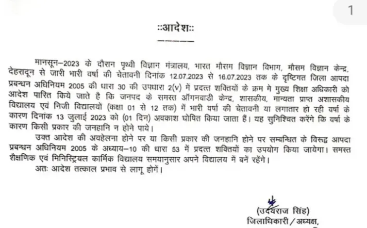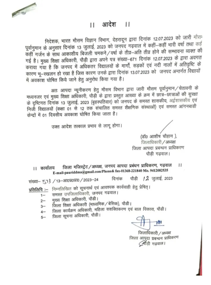 उत्तराखंड से बड़ी खबर सामने आ रही है, भारी बारिश के चलते कल, पौड़ी गढ़वाल, ऊधम सिंह नगर, और चमोली में स्कूल रहेंगे बंद