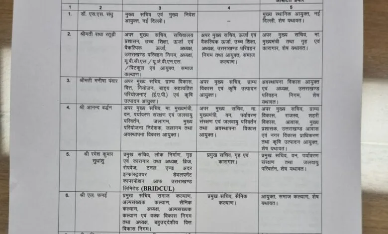 उत्तराखंड में इन 22 अधिकारियों के विभागों में फेरबदल , देखे खबर