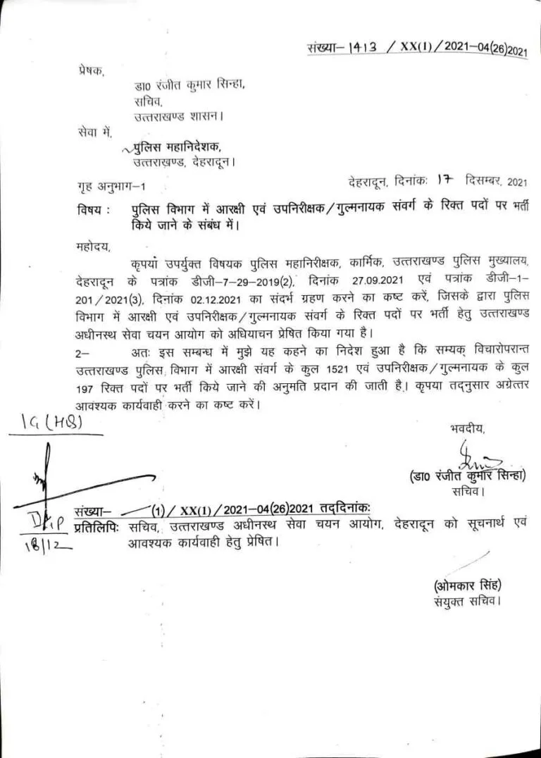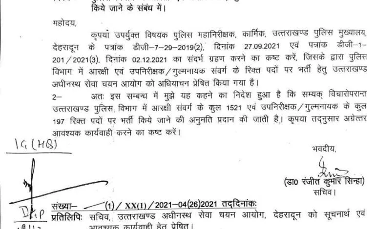 उत्तराखंड पुलिस में इन पदों की भर्ती के लिए शासन ने अनुमति की प्रदान जल्द होगी विज्ञप्ति जारी, देखें खबर