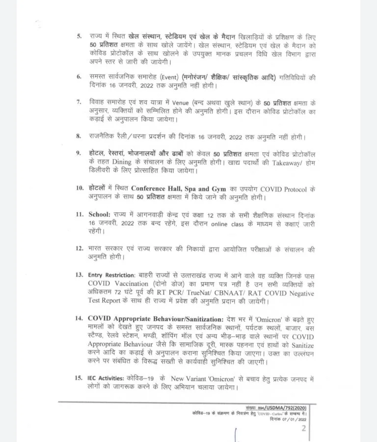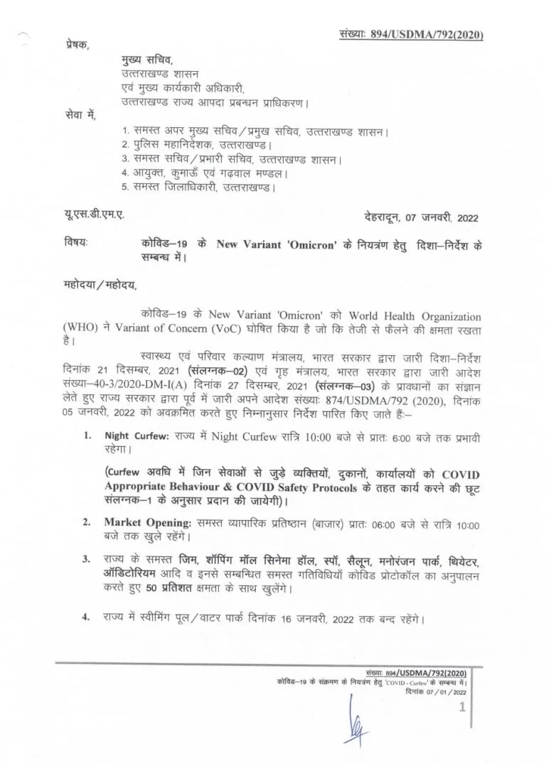 उत्तराखंड में नई SOP जारी, क्या खुलेगा , क्या रहेगा बंद किस पर लगी रोक, देखे खबर