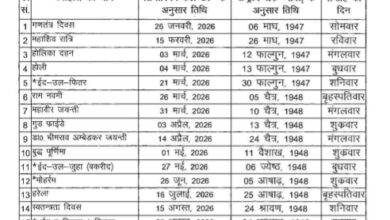 आज की बड़ी खबर : शासन ने जारी किया 2026 का अवकाश कैलेंडर, जानिए साल भर कब-कब रहेंगी छुट्टियां