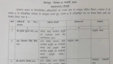 IAS वरुण चौधरी को मुख्य विकास अधिकारी चमोली के पद से पद मुक्त कर बाध्य प्रतीक्षा में रखा गया है।…