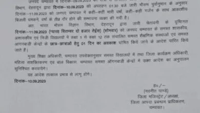 उत्तराखंड से बड़ी खबर सामने आ रही है, भारी बारिश के चलते कल चंपावत में एक दिन का अवकाश घोषित…