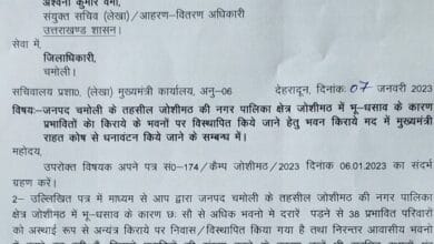 मुख्यमंत्री श्री पुष्कर सिंह धामी के निर्देश पर जोशीमठ में भू-धंसाव के कारण विस्थापित परिवारों को मकान किराये के लिए…