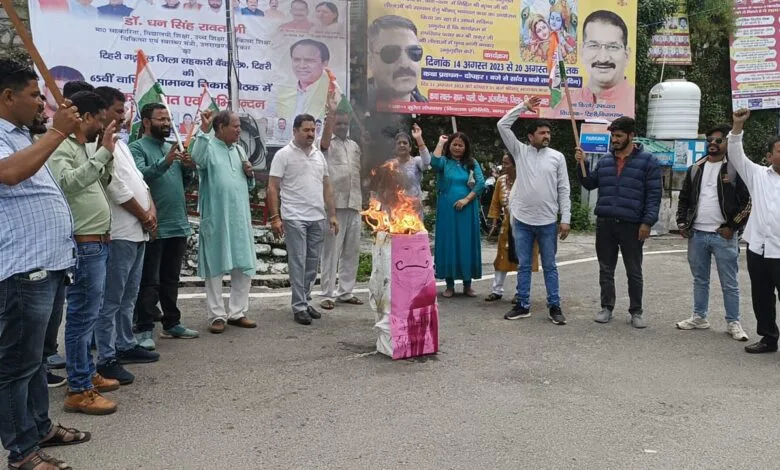 प्रधानमंत्री नरेंद्र मोदी द्वारा लोकसभा में मणिपुर और मेवात के नूह शहर में हिंसा पर कोई जवाब न दिए जाने तथा लोकसभा मे कांग्रेस संसदीय दल के नेता श्री अधीर रंजन चौधरी को निलंबित किए जाने को लेकर जिला मुख्यालय नई टिहरी में कांग्रेस जनों ने नई टिहरी के हनुमान चौक पर प्रधानमंत्री नरेंद्र मोदी का पुतला दहन किया