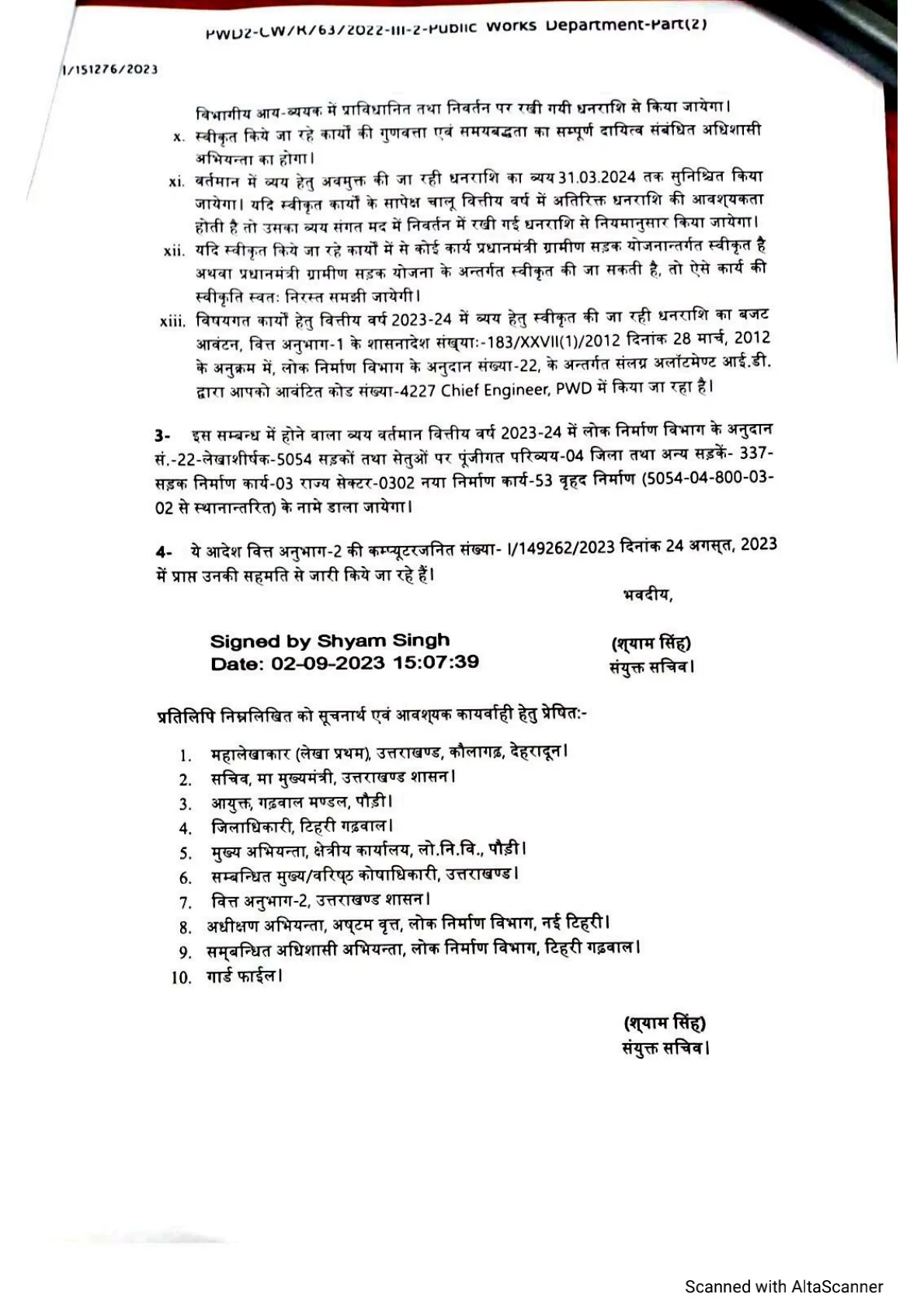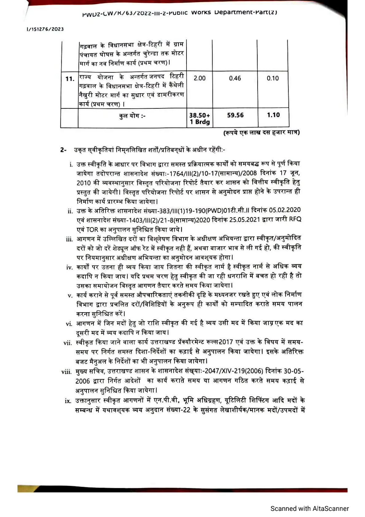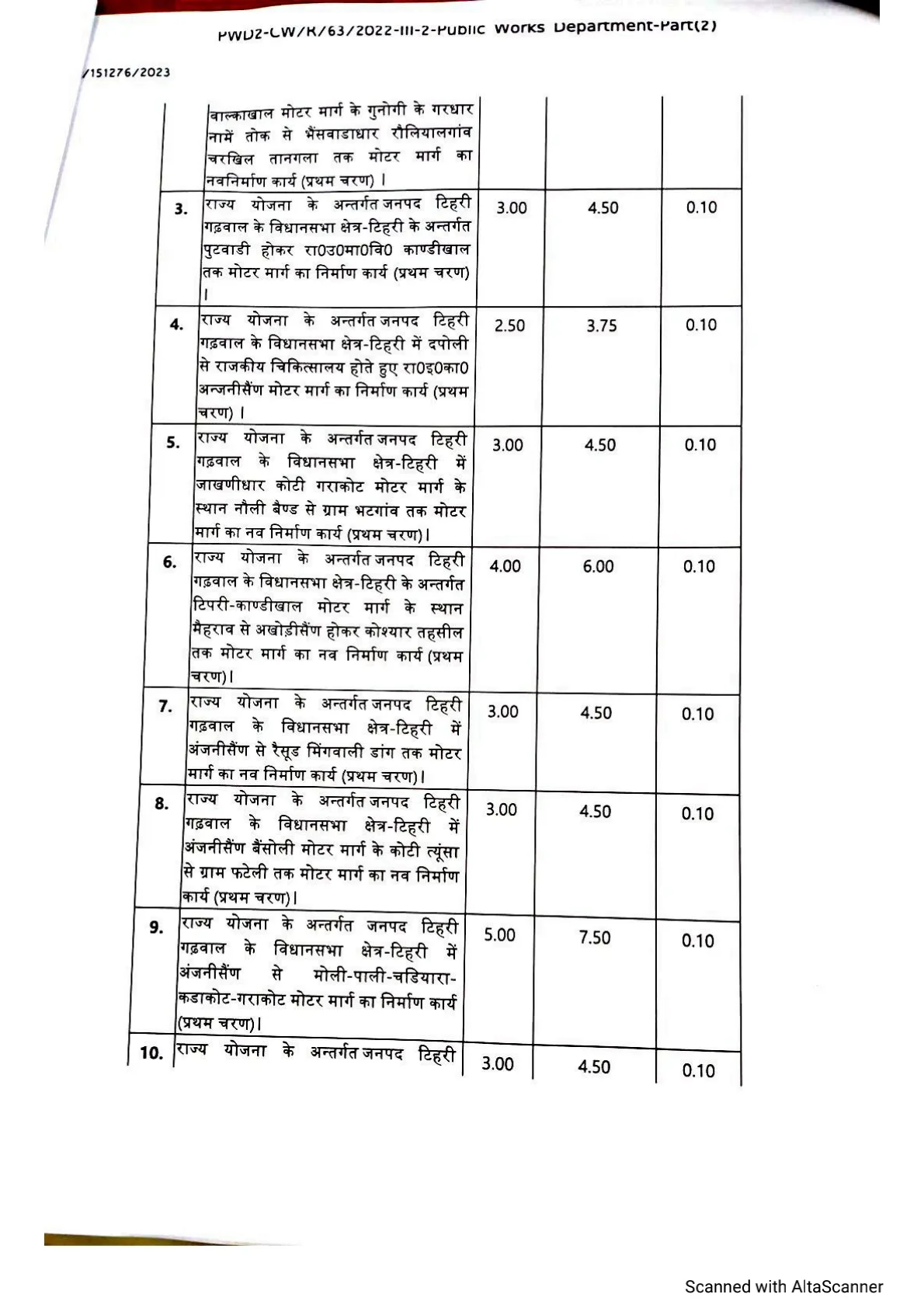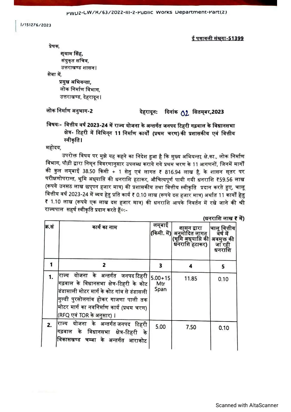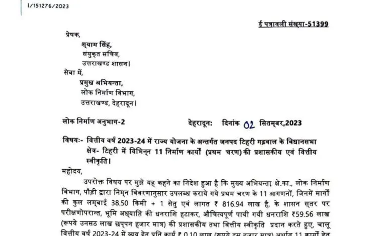 कुल 26सड़कों व एक पुल की स्वीकृति मिली है विधायक उपाध्याय ने इन सड़कों वो पुल की स्वीकृति मिलने पर मुख्यमन्त्री व लोक निर्माण मंत्री का टिहरी विधान सभा की जनता की और से आभार प्रकट किया है।