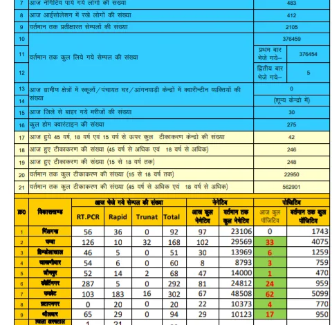 कोरोना संक्रमण के लिहाज से टिहरी जिले में हालात बिगड़ते जा रहे हैं। आज मंगलवार को भी यहां कोरोना के 150 नए मामले आए प्रदेश के साथ-साथ टिहरी जिले में भी कोरोना के मामले रुकने का नाम नहीं ले रहे हैं प्रतिदिन नए मामले सामने आ रहे हैं और बढ़ रहे हैं आज 4:00 बजे स्वास्थ्य विभाग से मिली जानकारी के अनुसार आज जिले में 150 नए मामले आए हैं जिले में वर्तमान तक कुल पॉजिटिव की संख्या 16084 है जबकि वर्तमान तक स्वास्थ्य हुए मरीजों की संख्या 15591 है जिले में एक्टिव केस 412 पहुंच गए हैं विकासखंड चम्बा में आज 33 हिण्डोलाखाल में 06 फकोट मे 62 थौलधार में 17 कीर्तिनगर में 24 प्रतापनगर में 4 मामले आए हैं